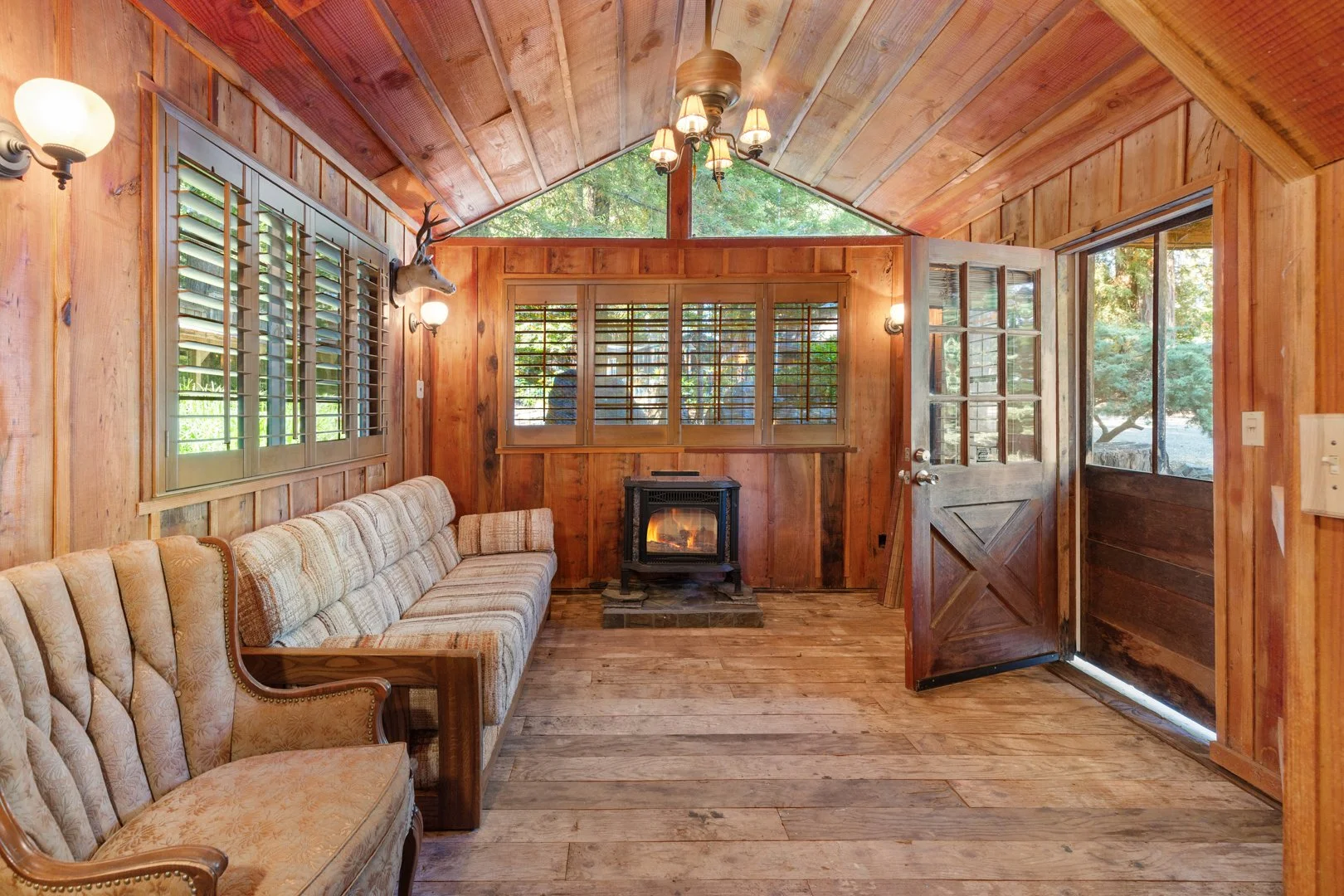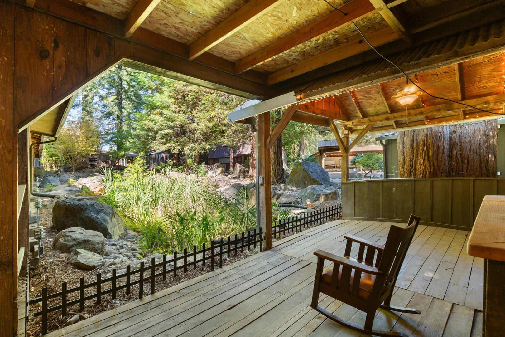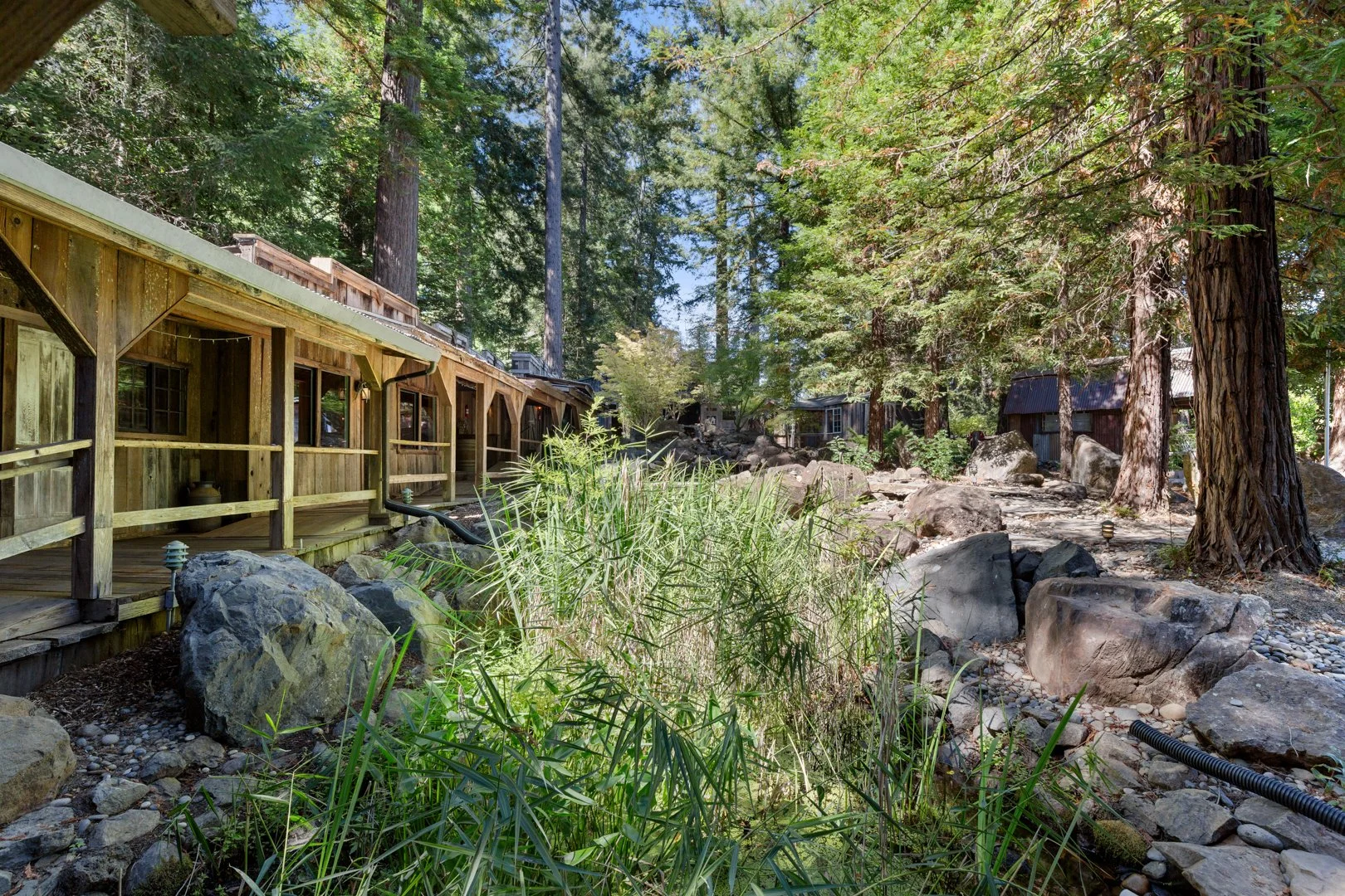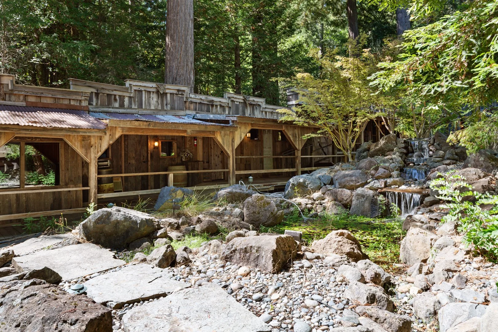 The 3781 sq ft main house with pool and sauna is available as a 4+BR/3BA or 3BR/2BA. Fully remodeled, it blends the rustic craftmanship of a summer camp with luxury touches and redwood views from every room. An additional 1200 sq ft of covered deck makes for fantastic al fresco dining year-round.