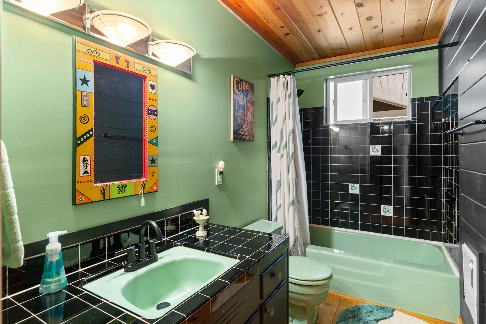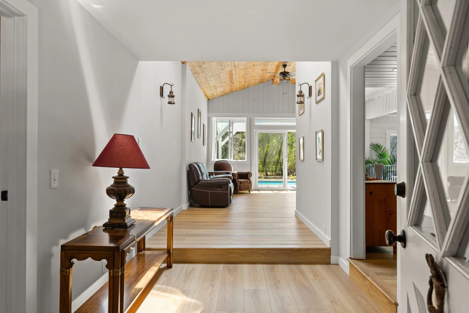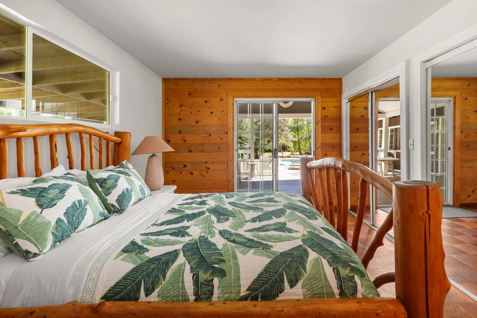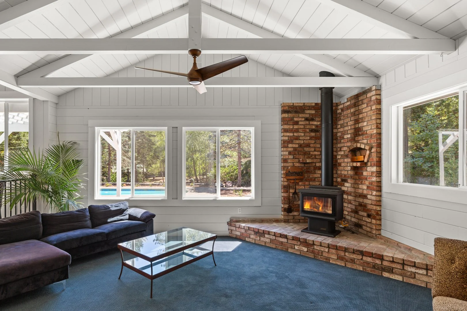 The 3781 sq ft main house with pool and sauna is available as a 4+BR/3BA or 3BR/2BA. Fully remodeled, it blends the rustic craftmanship of a summer camp with luxury touches and redwood views from every room. An additional 1200 sq ft of covered deck makes for fantastic al fresco dining year-round.